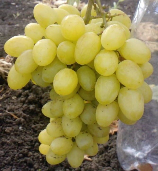 Skorá a rezistentná stolová odroda s veľkými svetloružovými až červenými bobuľami.
