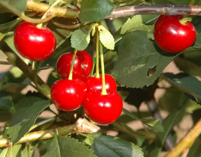 Stredne neskorá, samoopelivá čerešňa so sýtočervenými plodmi srdcovitého tvaru.