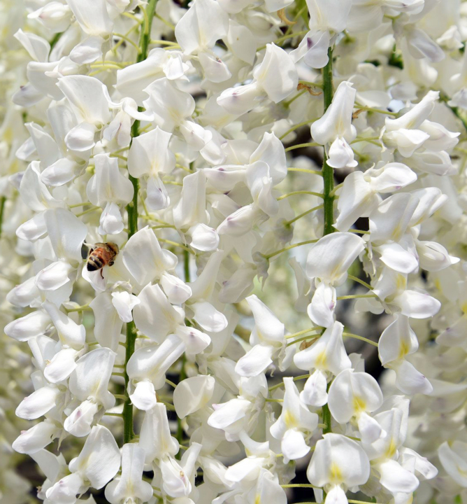 Charakteristika: Kultivar vistérie ´SHIRO KAPITAN FUJI´ je atraktívnou ozdobou pergoly alebo altánku, ktorým dodáva exotický vzhľad. Vytvára výnimočne voňajúce zhluky kvetov, ktoré sa od iných kultivarov líšia najmä skladbou a tvarom kvetu. Snehobiele strapce hrachovitých kvetov s nápadnou žltou škvrnou sú dlhé 15-20 cm. Kvitne v máji na holých neolistených výhonoch. Listy sú veľké, svetlozelené. Rastlina vytvára jedovaté plody ukryté v strukoch. Pre svoj rast vyžaduje oporu. Dokáže vytvoriť príjemný tieň, ale tiež zakryť neatraktívnu fasádu a plot.