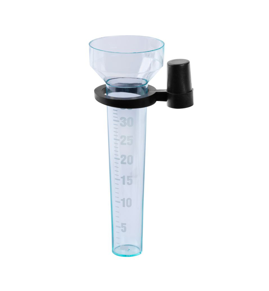 Charakteristika: Praktický záhradný zrážkomer na ľahké a presné stanovenie množstva zrážok z kvalitného a stabilného plastu. Zrážkomer s držiakom má stupnicu do 35 mm zrážok (35 litrov/m2). Balenie neobsahuje stojan. Výška 24 cm.
