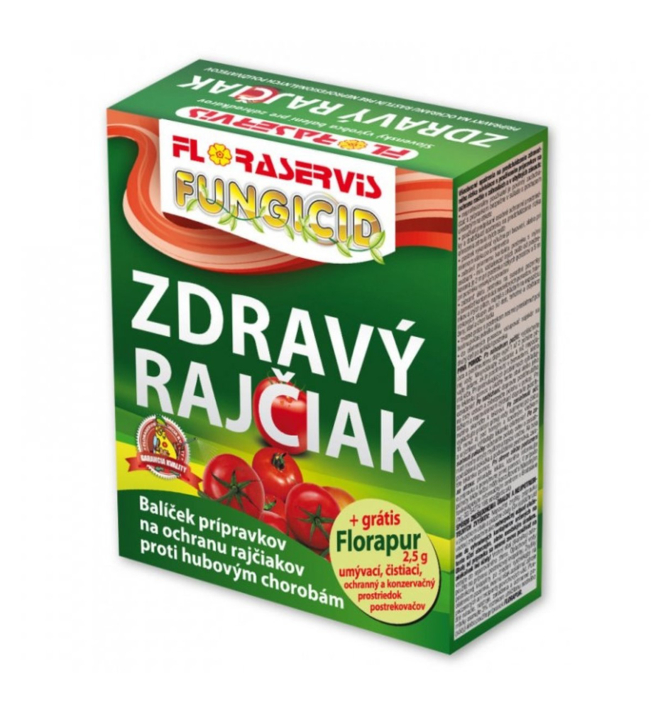 Rozsah a spôsob použitia: Prípravky sa aplikujú samostatne v poradí podľa označenia na vreckách (1.- 4.) od polovice júna najmä, ak prevláda daždivé počasie. Dávky jednotlivých prípravkov sú určené na prípravu 5 litrov postrekovej kvapaliny. V sade Zdravý rajčiak si zákazník zadarmo nájde priložený: FLORAPUR 2,5 g – umývací, čistiaci, ochranný a konzervačný prostriedok postrekovačov.
