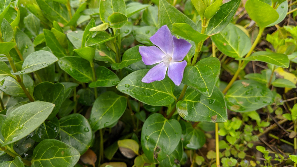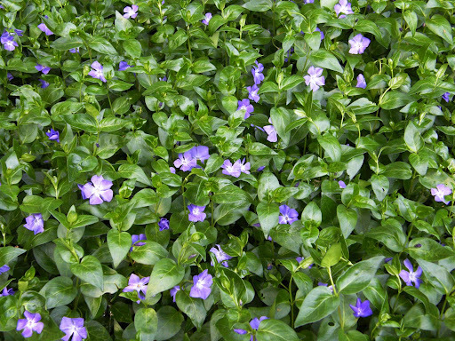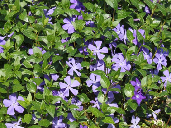 Obľúbená vždyzelená pôdopokryvná trvalka s fialovomodrými kvetmi.