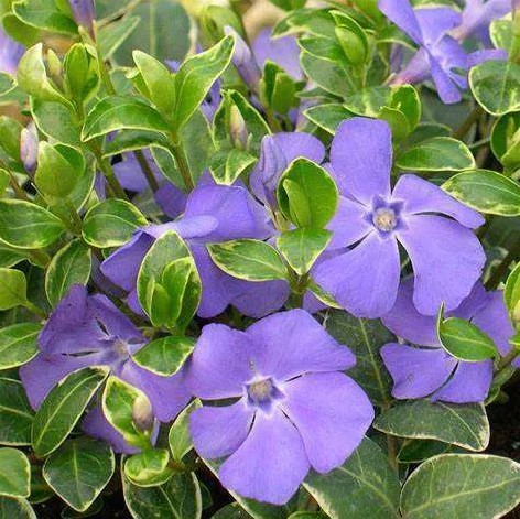 Charakteristika: Zimozeleň väčšia ´VARIEGATA´ je atraktívna, vždyzelená pôdopokryvná trvalka s výrazne pestro sfarbenými listami. Jej väčšie, oválne listy sú tmavozelené so širokým krémovobielym okrajom, vďaka čomu pôsobí veľmi dekoratívne po celý rok. V období od apríla do júna rastlina kvitne sviežimi modrofialovými kvetmi, ktoré pekne kontrastujú s pestrým olistením. Dorastá do výšky približne 20-30 cm a rýchlo vytvára husté porasty.