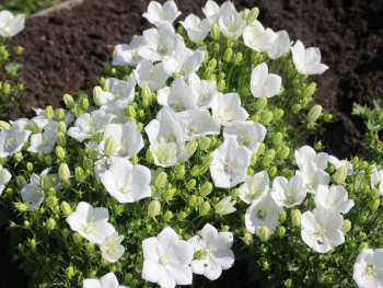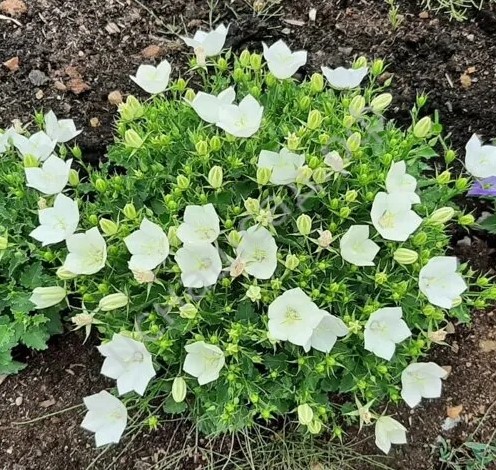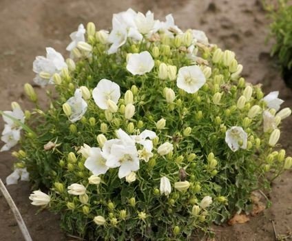 NOVINKA! Elegantný nízky kobercový zvonček s veľkými snehovobielymi kvetmi.