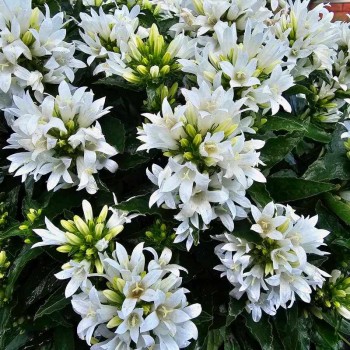 Charakteristika: Zvonček klbkatý ´GENTI WHITE´ rastie mimoriadne husto a kompaktne. Dorastá do výšky 35-40 cm. Od začiatku leta začína tvoriť maslové puky, z ktorých sa neskôr vytvárajú nádherné snehovobiele zvončekovité kvety zoskupené do polguľovitých súkvetí. Práve tie dodávajú letným záhonom nežnosť a eleganciu. Sú vyhľadávané včelami a iným užitočným hmyzom. Veľmi pekne vynikne na okrajoch záhonov v kombinácií s modrým kultivarom. Je ideálny na výsadbu do vidieckych a lúčnych záhrad.