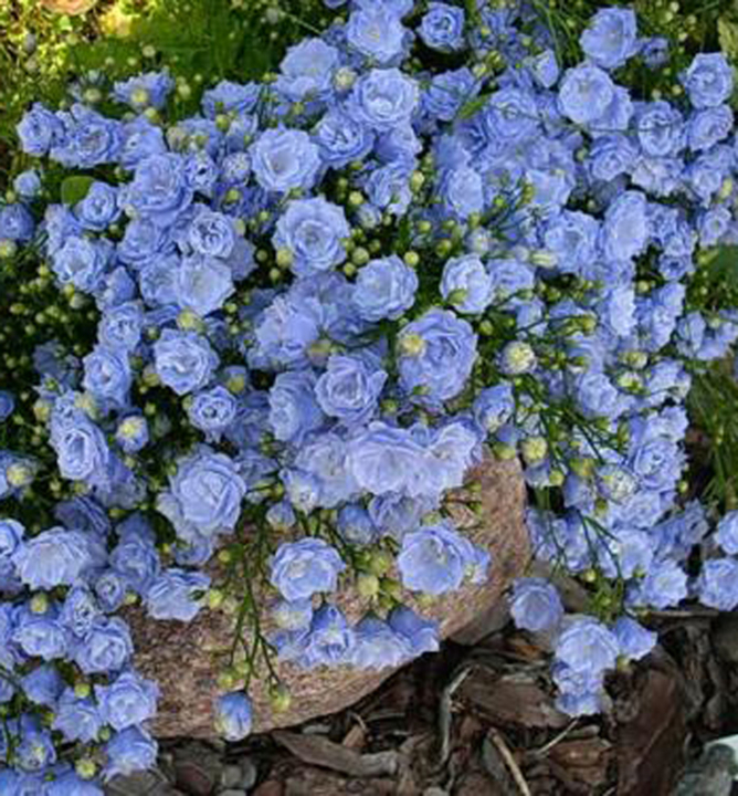Dlhokvitnúca moderná trvalka so súkvetiami malých fialovomodrých kvetov.