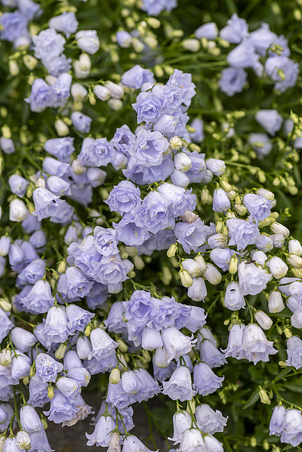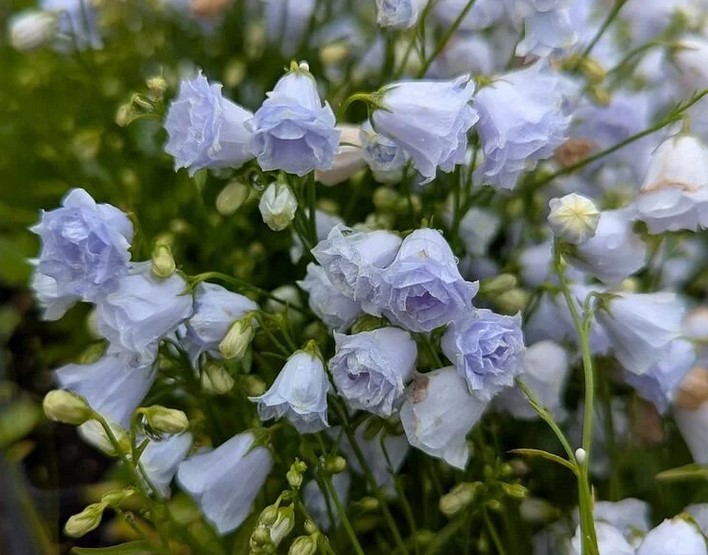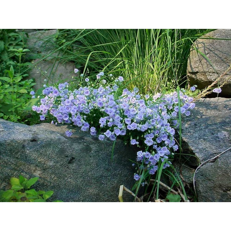 Nízky kobercovitý zvonček s množstvom plných svetlomodrých kvetov.