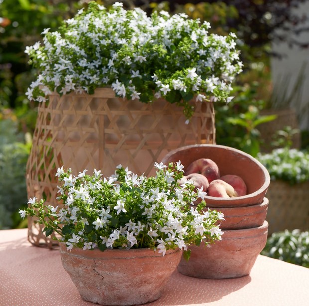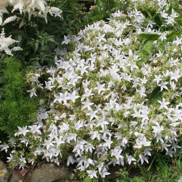 Obľúbený skalničkový zvonček "Strieborný dážď" s množstvom bielych kvetov.