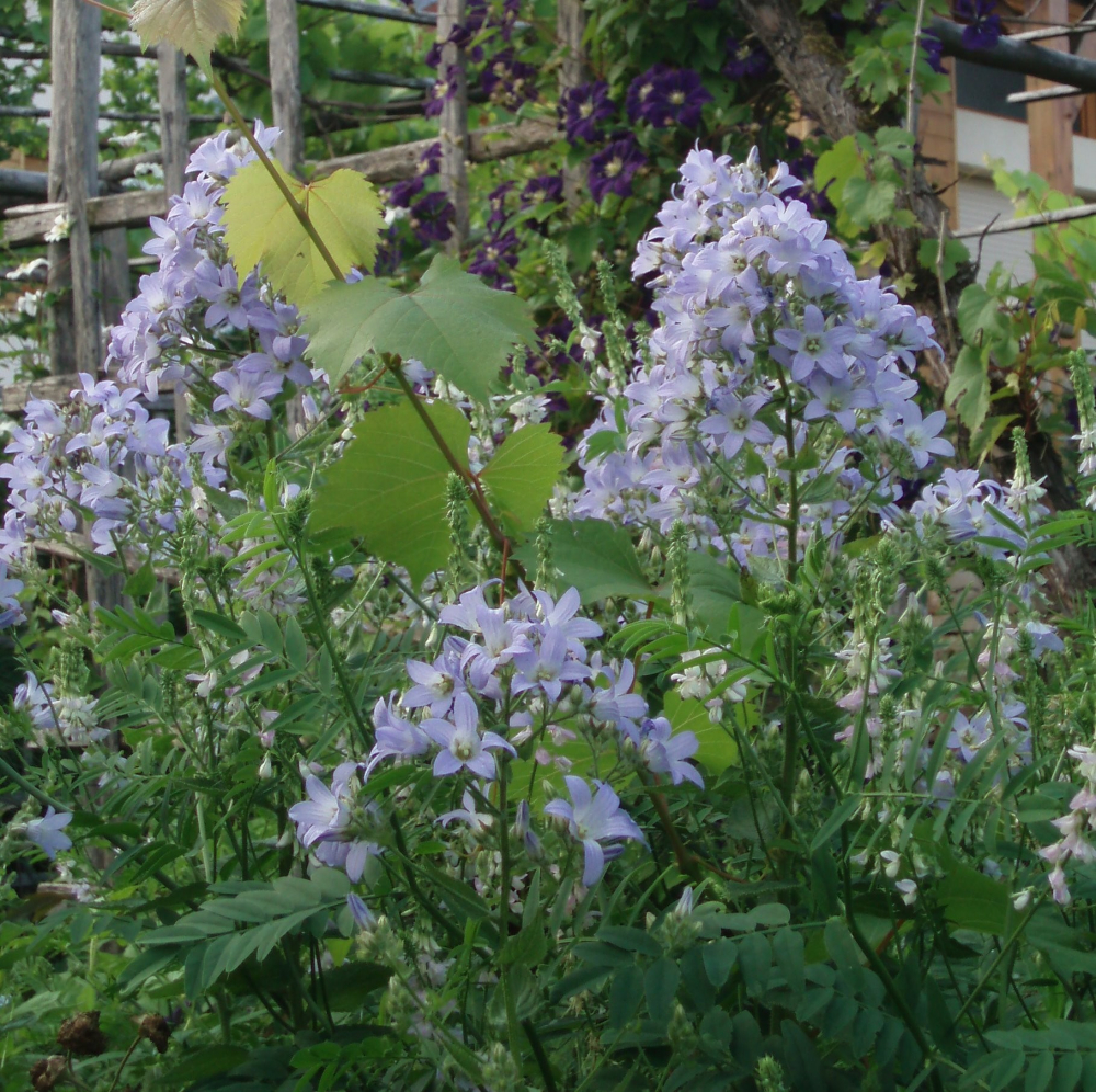Vyššia trvalka kvitnúca počas leta so svetlomodrými kvetmi.