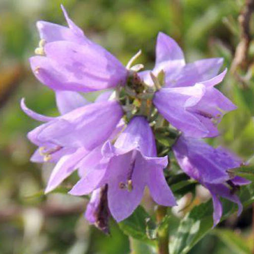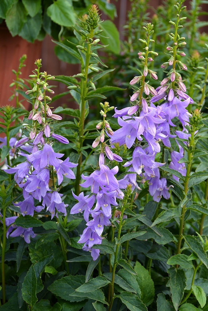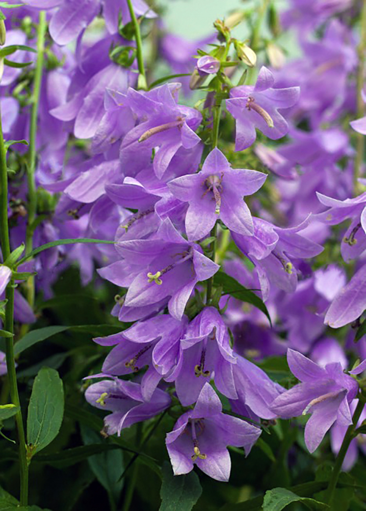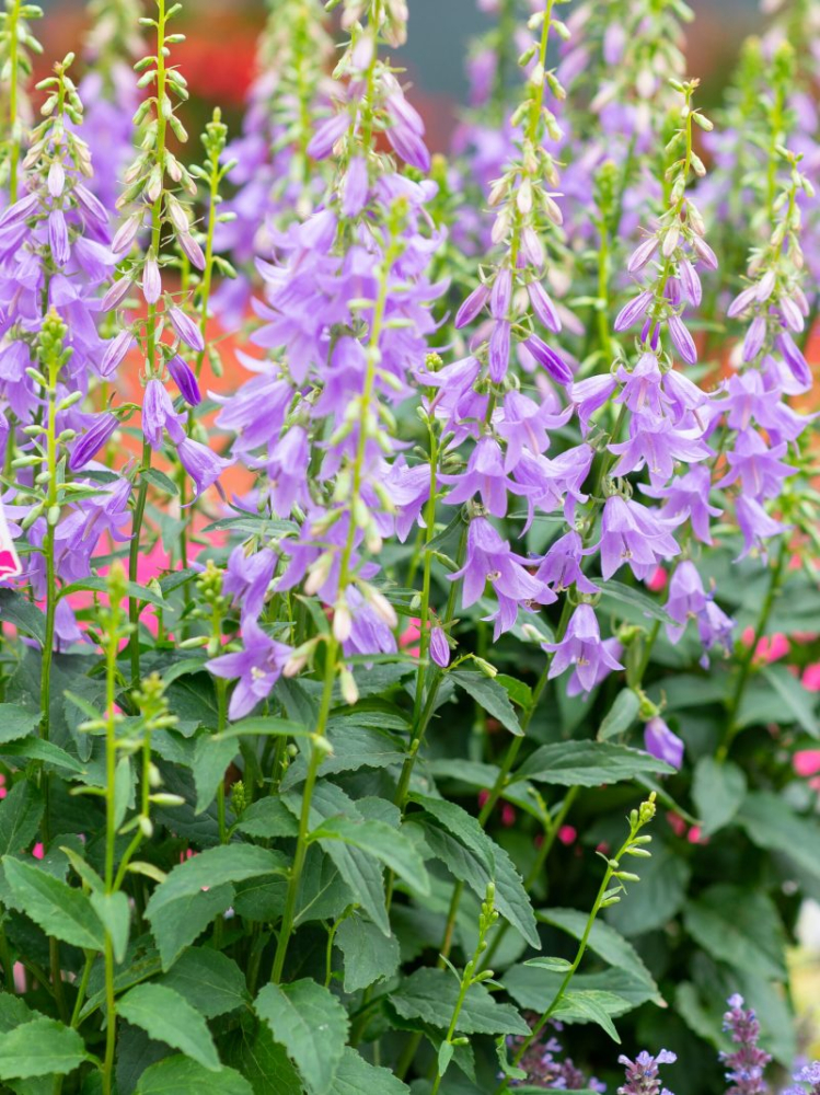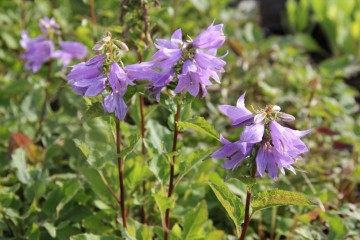 Elegantný zvonovec s fialovými kvetmi na vyšších vzpriamených výhonoch.